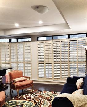 Typically, plantation shutters are painted or stained to match the color of your home's interior wood trim.